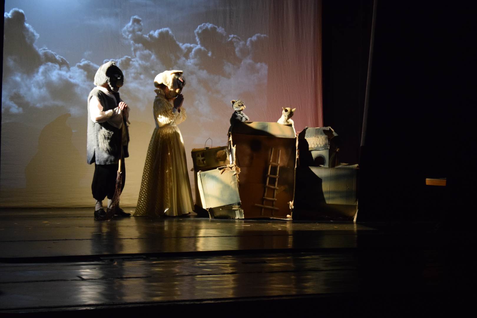 O Pisică de Angora, văduvă, stilată și foarte bogată, trăiește în lux într-un castel medieval, fiind păzită de bătrânul și credinciosul Motan Vasile, în timp ce nepoții ei orfani, doi pisoi sărmani trăiesc pe străzi, în frig și fără adăpost. Lăudăroasă si vanitoasă peste măsură, își invită vecinii la o serată, să le arate luxul in care trăiește.