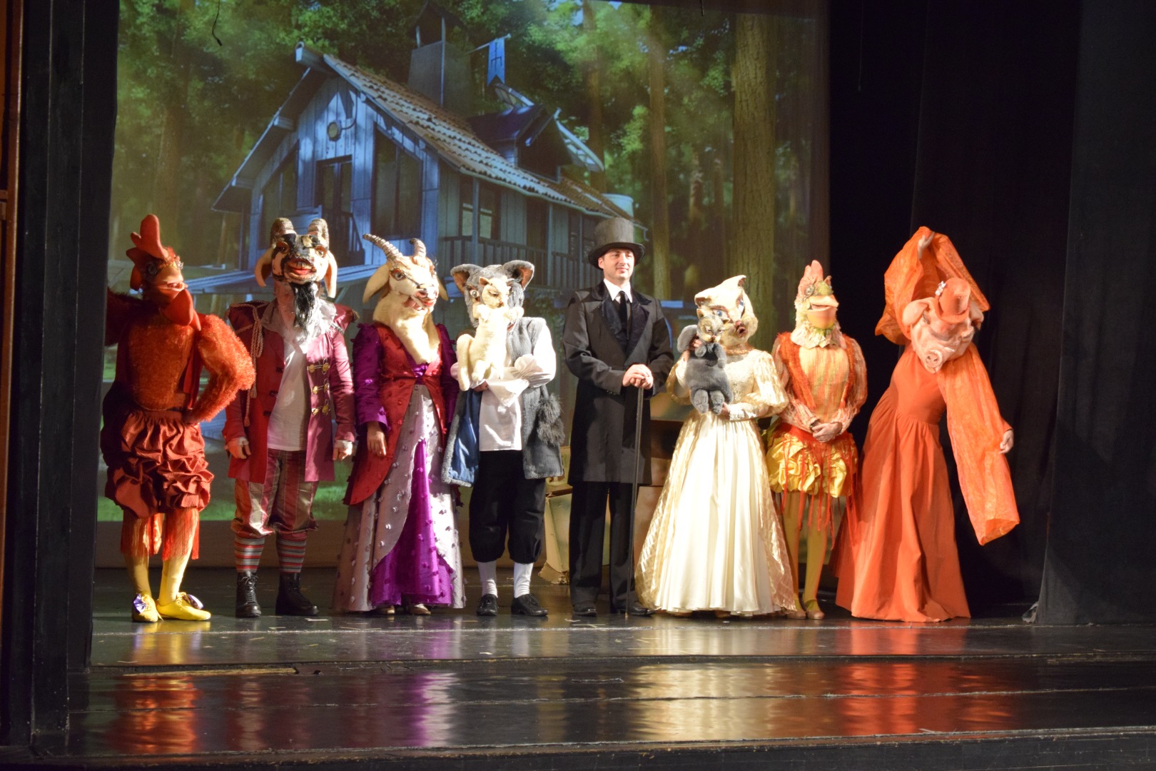 Printre invitați se numără : Țapul și Capra, Cocoșul și Găina, precum și Vecina purcică. După petrecere, impresionați de cele văzute, invitații o invită pe pisică să le întoarcă vizita cât mai curând. Urmează o serie de peripeții pe care însă … le veți descoperi văzând spectacolul din care cei mici vor învăța că, dacă ești bun și generos necondiționat, viața te va răsplăti.